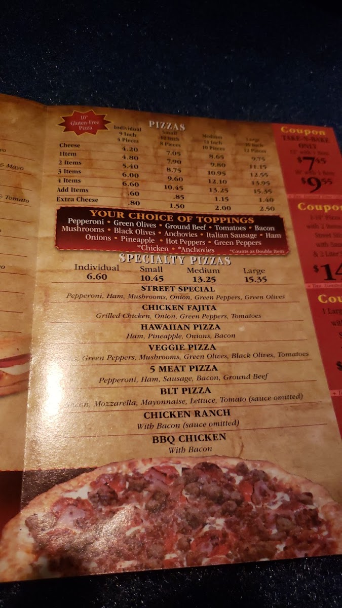 The menu at Main Street Pizza offers a straightforward, comforting selection that suits casual dining and easy takeout. It features a range of classic and specialty pizzas alongside hearty subs, all crafted to satisfy a variety of tastes without fuss.